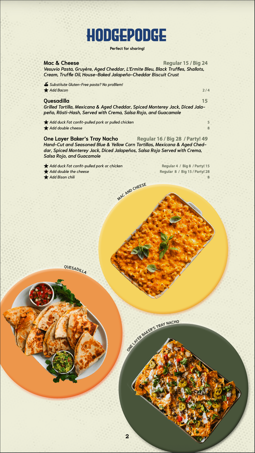 Inspired by a contemporary gastrohouse concept, the menu organizes a wide range of offerings, from shareable comfort foods to elevated brunch items, into clear, easy-to-navigate sections. Emphasis was placed on typography, spacing, and contrast to enhance readability while maintaining a cohesive and engaging brand identity.